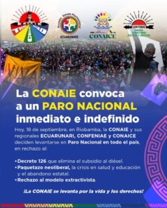 - Convocar a las bases, organizaciones sociales y a la sociedad al paro nacional de carácter inmediato e indefinido en Ecuador.